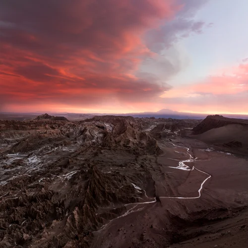 Red rocks and sand, salt deposits and dried riverbeds combine to create amazing patterns in the Valle de la Luna.